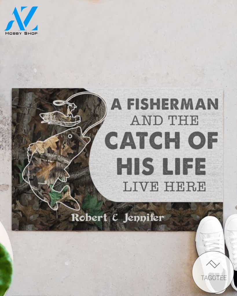 Personalized A fisherman and the catch of his life live here doormat