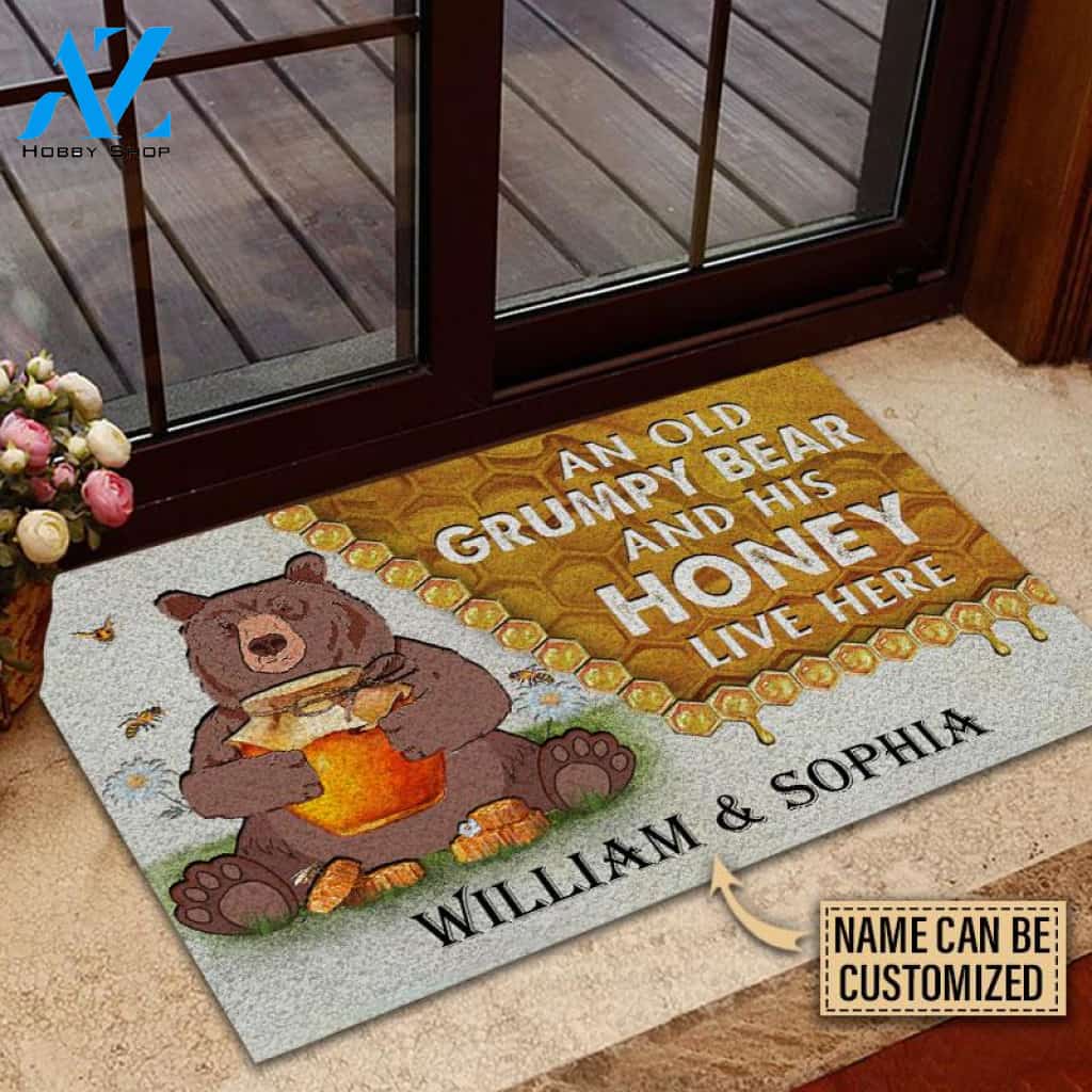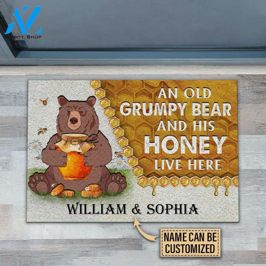 Personalized Bear And His Honey Bee Live Here Customized Doormat