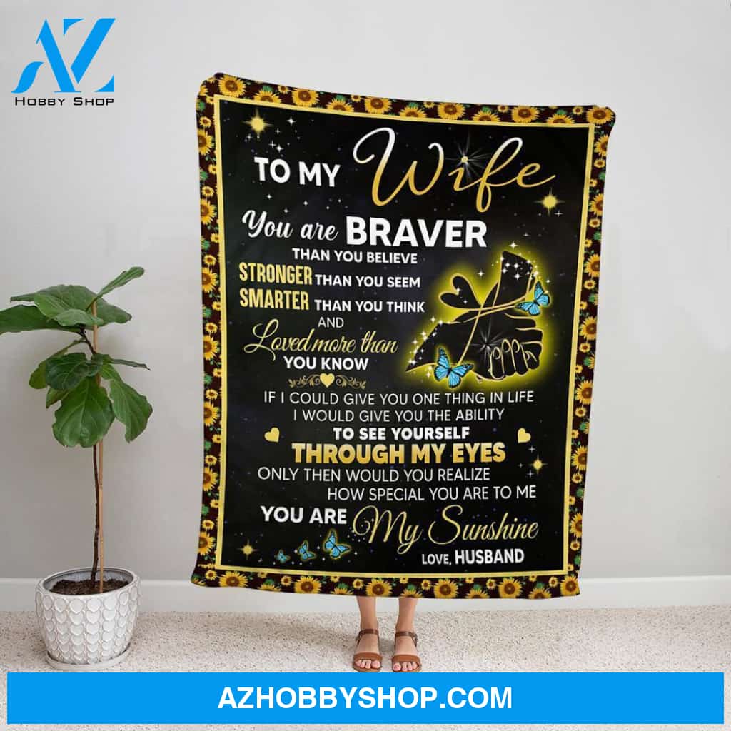 Personalized Blanket, Butterfly Sunflower Husband Letter To My Wife You Are My Sunshine Fleece Blanket