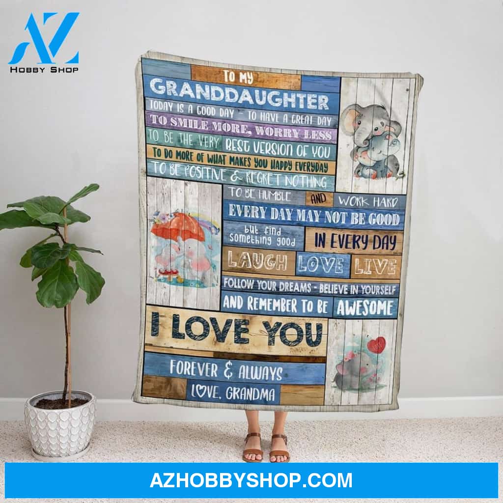 Personalized Blanket, Elephant Letter To My Granddaughter I Love You Forever & Always Love Grandma Family Fleece Blanket