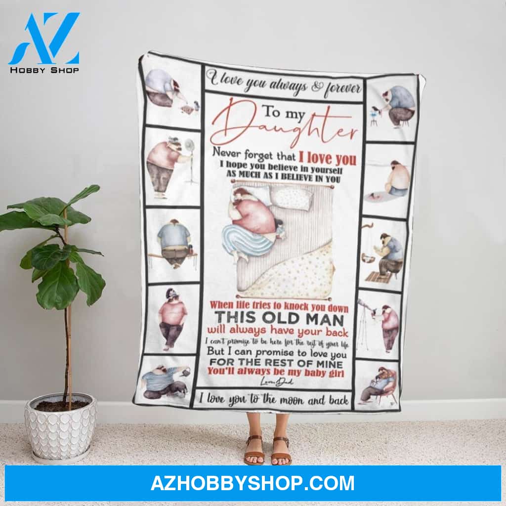 Personalized Blanket, Father & Daughter Letter To My Daughter This Old Man Will Always Have You Back Fleece Blanket