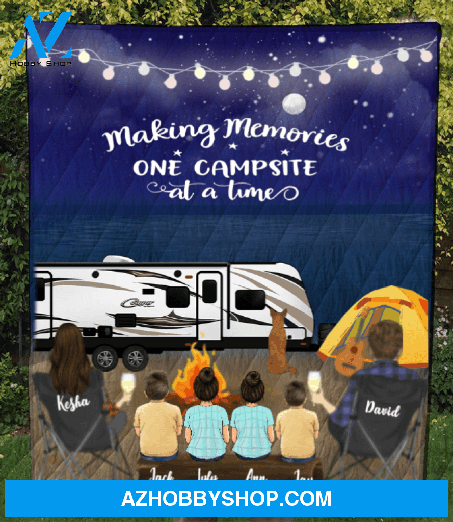 Personalized blanket gift idea for the whole family, dog lovers Parents with 4 kids & 1 dog night beach camping Blanket