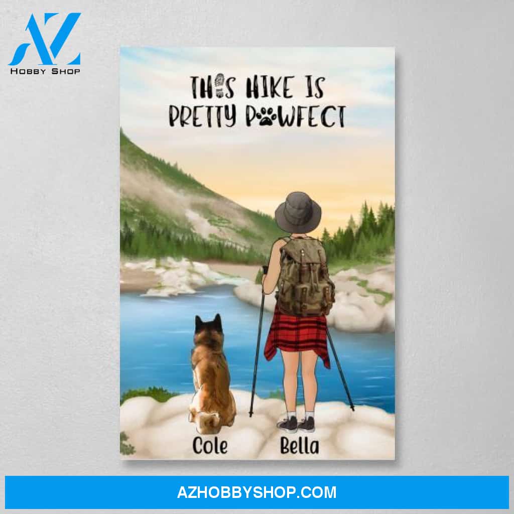 Personalized Canvas, Woman Hiking with Dogs, Gift for Hiking and Dog Lovers