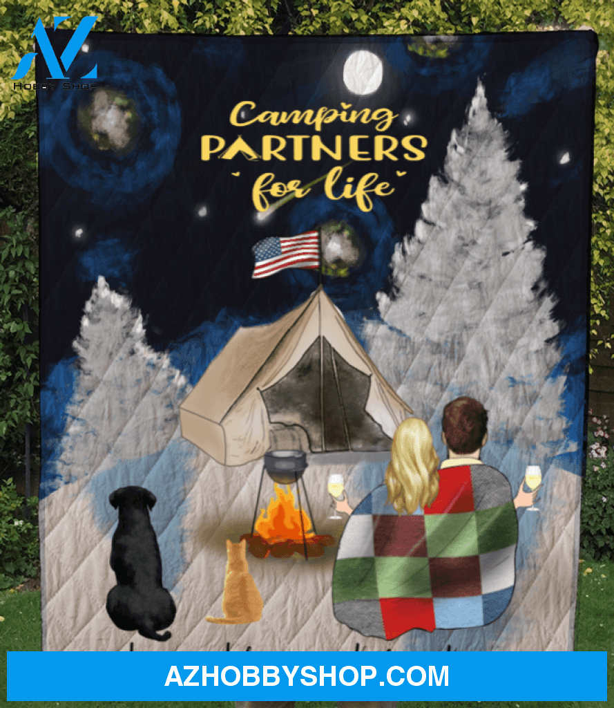 Personalized cat dog & owners camping blanket gift idea for the whole family, cat dog lovers Couple & 2 Pets Snow Mountain Blanket