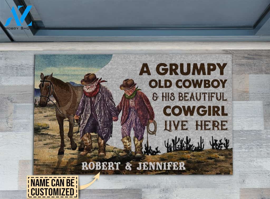 Personalized Cowboy And Cowgirl Live Here Customized Doormat