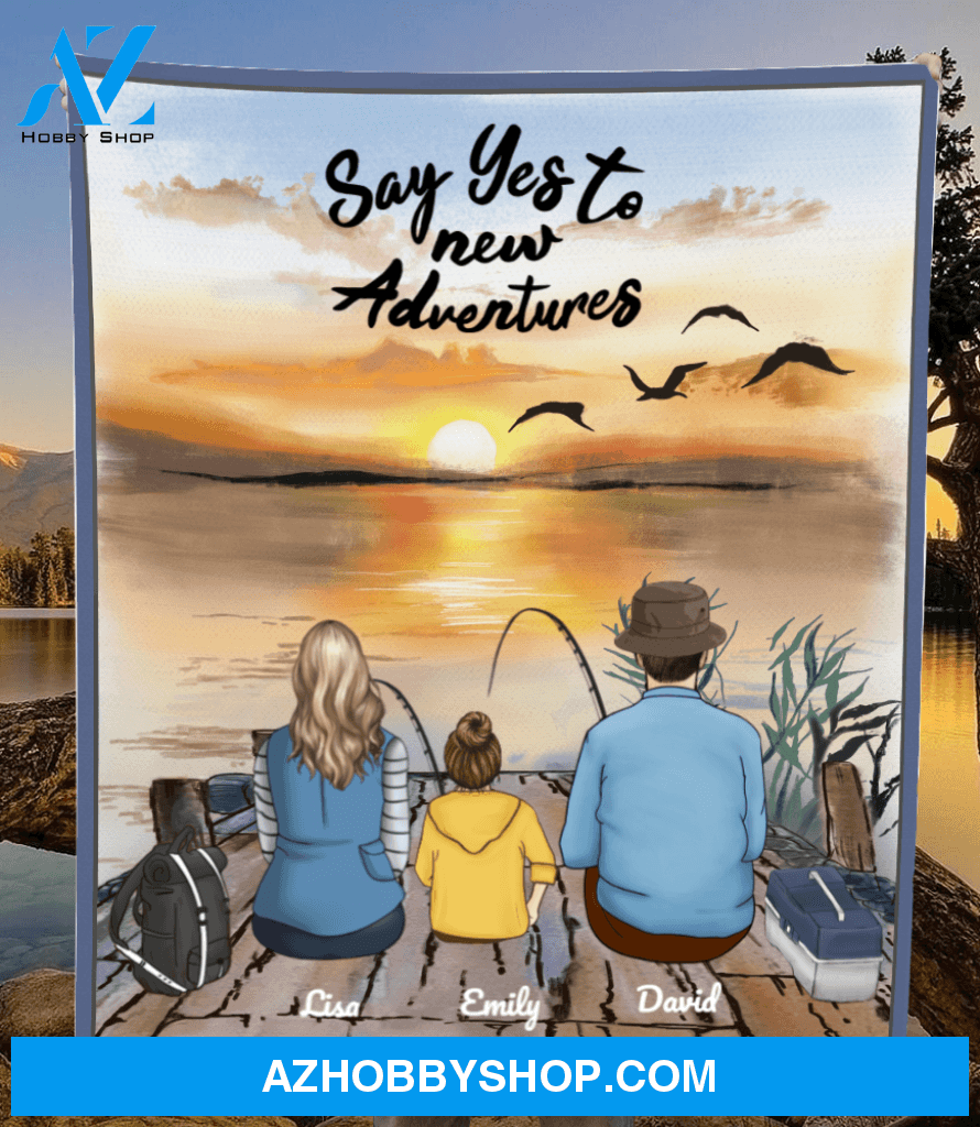 Personalized Fishing Blanket Gift idea for the whole family, fishing lovers Parents & 1 Kid Fishing Blanket