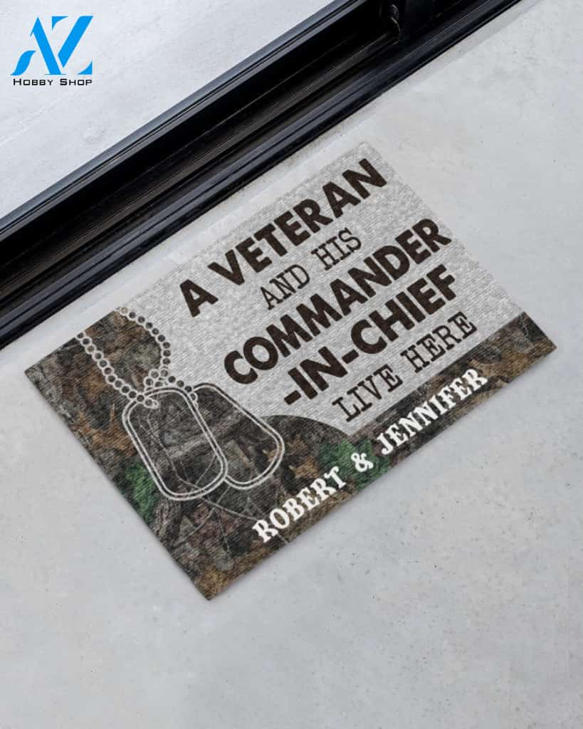 Personalized Veteran Camo Couple Live Here Doormat