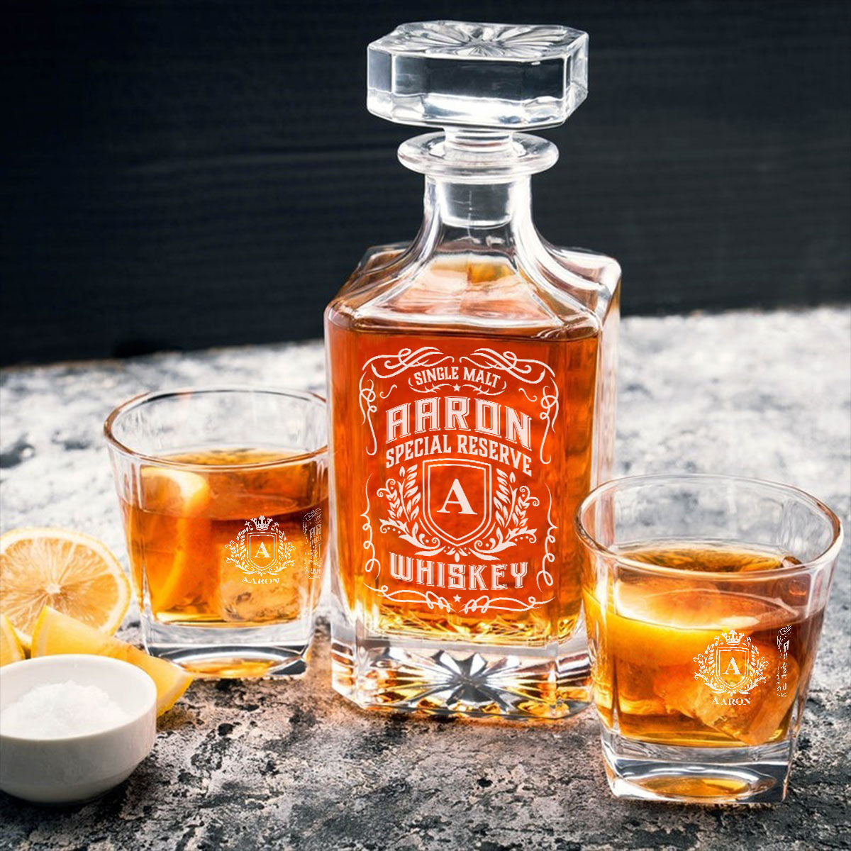Personalized Whiskey Decanter Set with Wooden Box, Personalized Groomsmen Gifts, Best Man Gift Dad Gift
