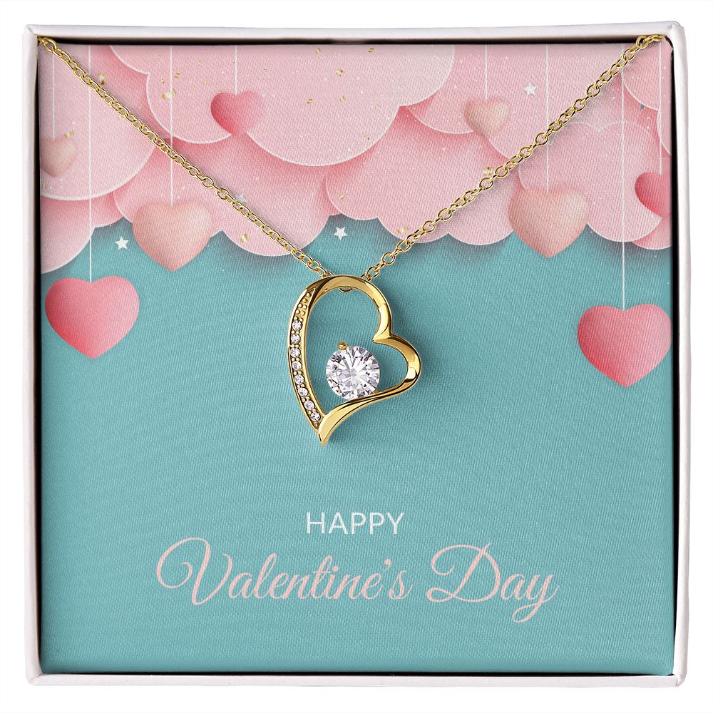 Pink Hearts Happy Valentine's Day Forever Love Heart Necklace