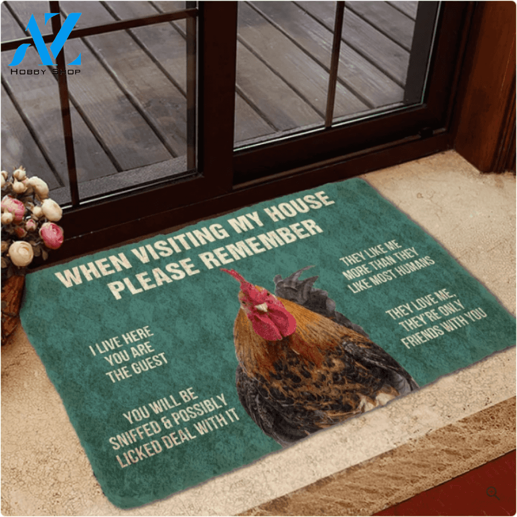 Please Remember Roosters House Rule Funny Indoor And Outdoor Doormat
