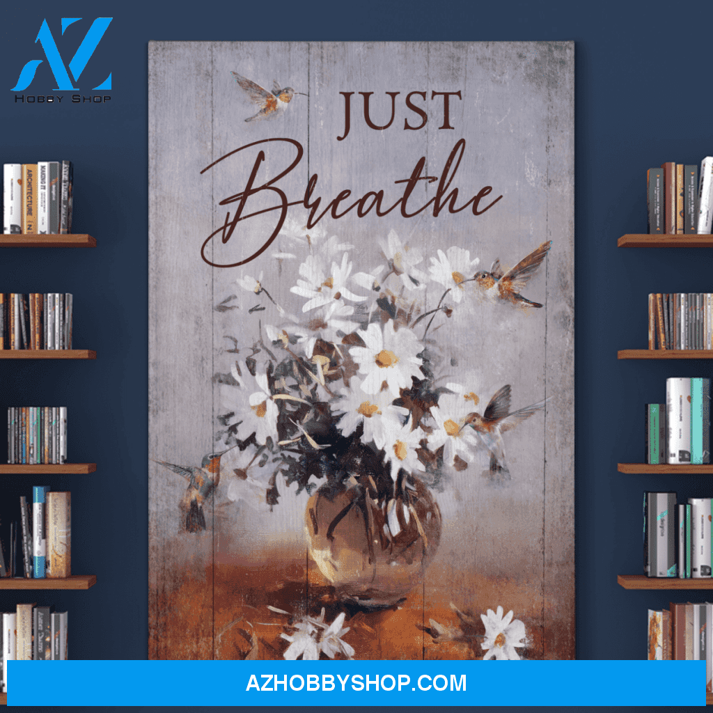 Bible Verse Wall Art - Hummingbird and daisy - Just breathe Canvas