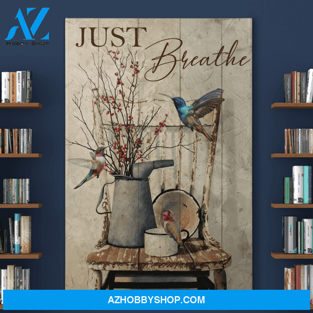 Bible Verse Wall Art - Hummingbird - Just breathe 1 Canvas