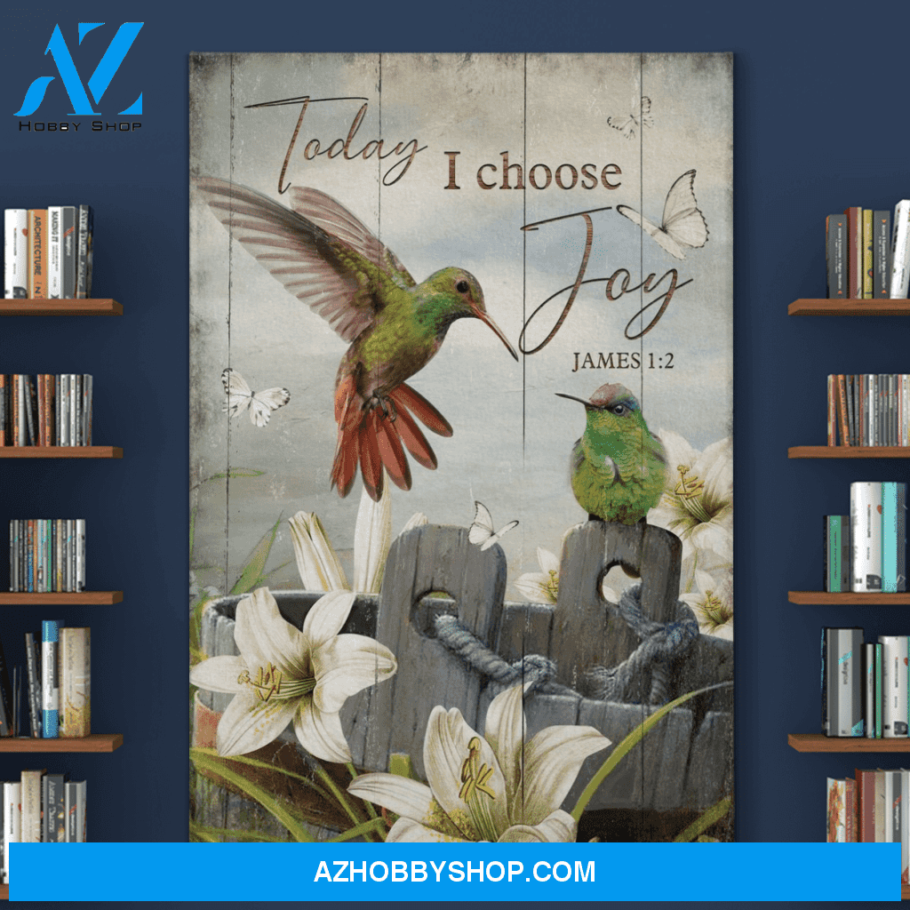 Bible Verse Wall Art - Hummingbird - Today I choose joy 2 Canvas
