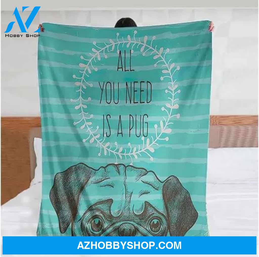 Pug Baby Animal Image Of A Cute Dog With All You Need Is A Pug Fleece Blanket Gift For Dog Lovers