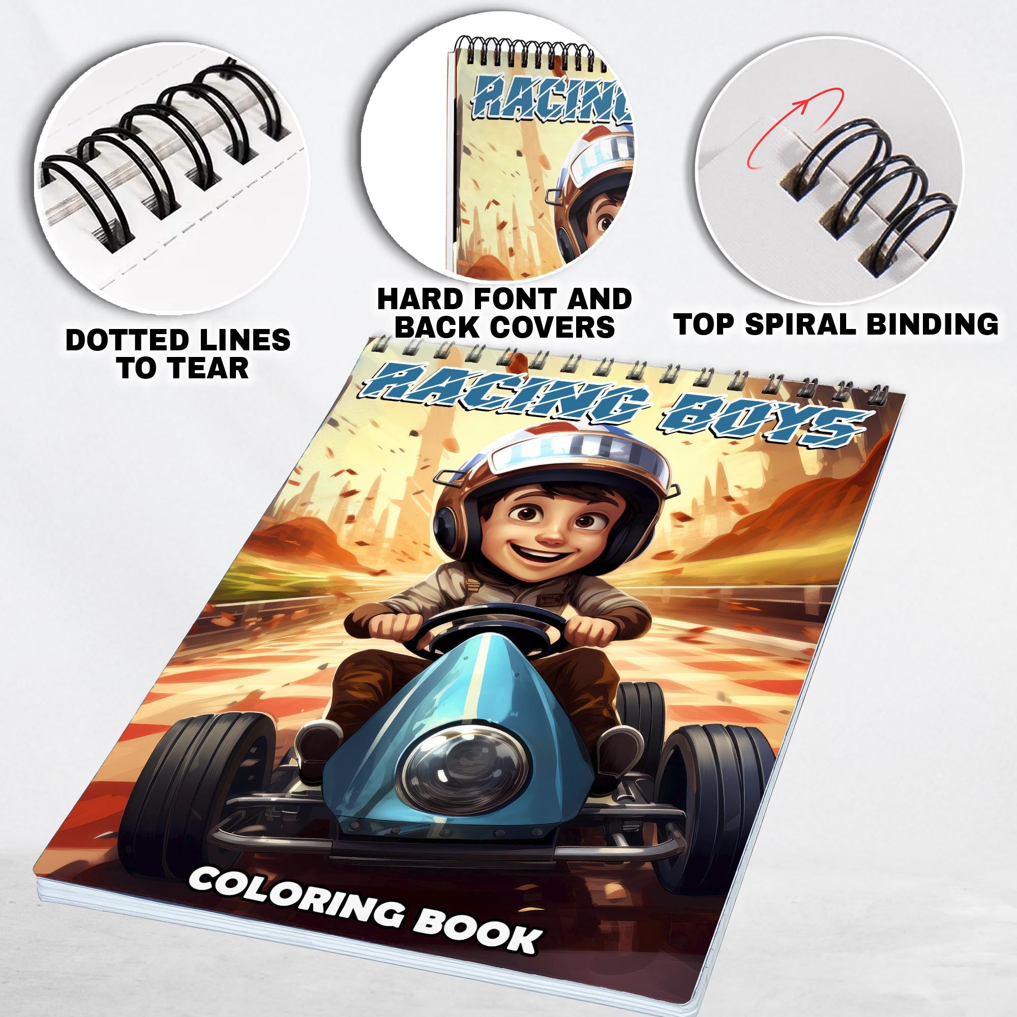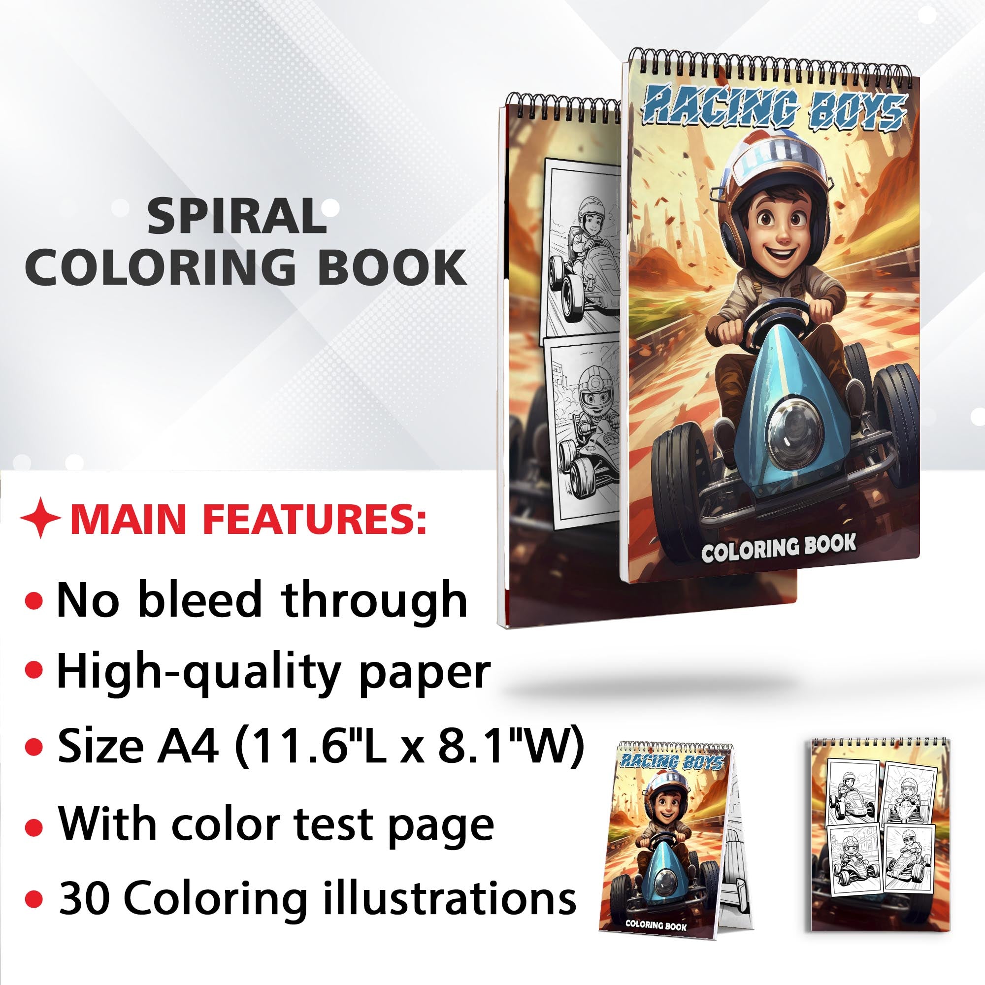 Racing Boys Spiral Bound Coloring Book: 30 Captivating Racing Boys Coloring Pages for an Adrenaline-Fueled Experience