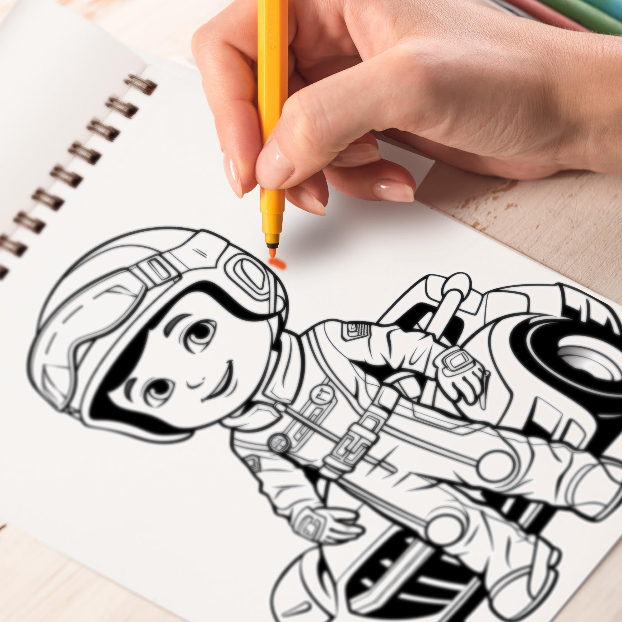 • 30 detailed black line illustrations of young racing enthusiasts, each eagerly awaiting your artistic touch.