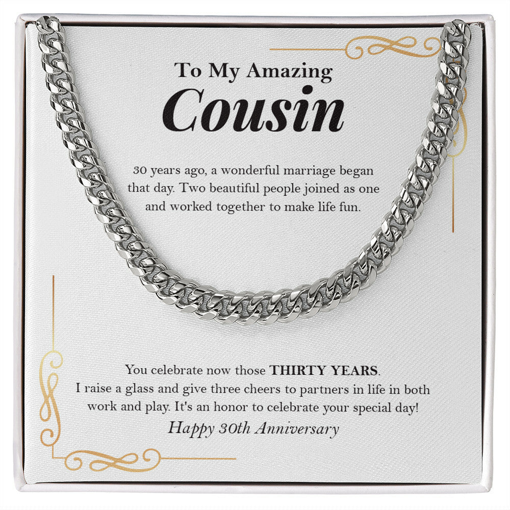 "Raise A Glass" Amazing Cousin 30th Wedding Anniversary Necklace Gift Cuban Link Chain Jewelry Box