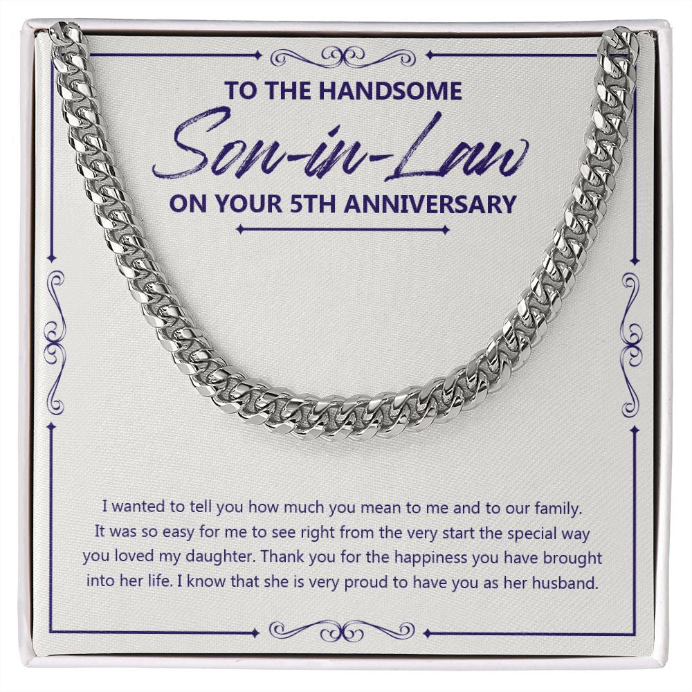 "Right From The Start" Handsome Son In Law 5th Wedding Anniversary Necklace Gift From Mother-In-Law Father-In-Law Cuban Link Chain Jewelry Box