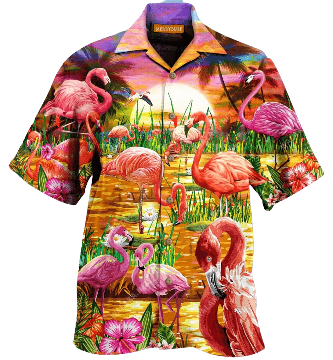 Romantic Sunset With Flamingo Pink Unique Design Hawaiian Shirt For Men Women