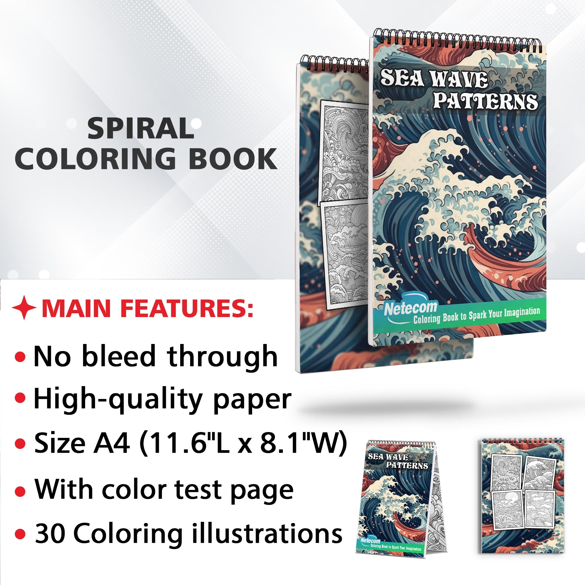 Sea Wave Patterns Spiral Bound Coloring Book, Discover the Tranquil Power of Ocean Waves with 30 Mesmerizing Coloring Pages for Art Enthusiasts to Create Harmonious and Relaxing Artwork