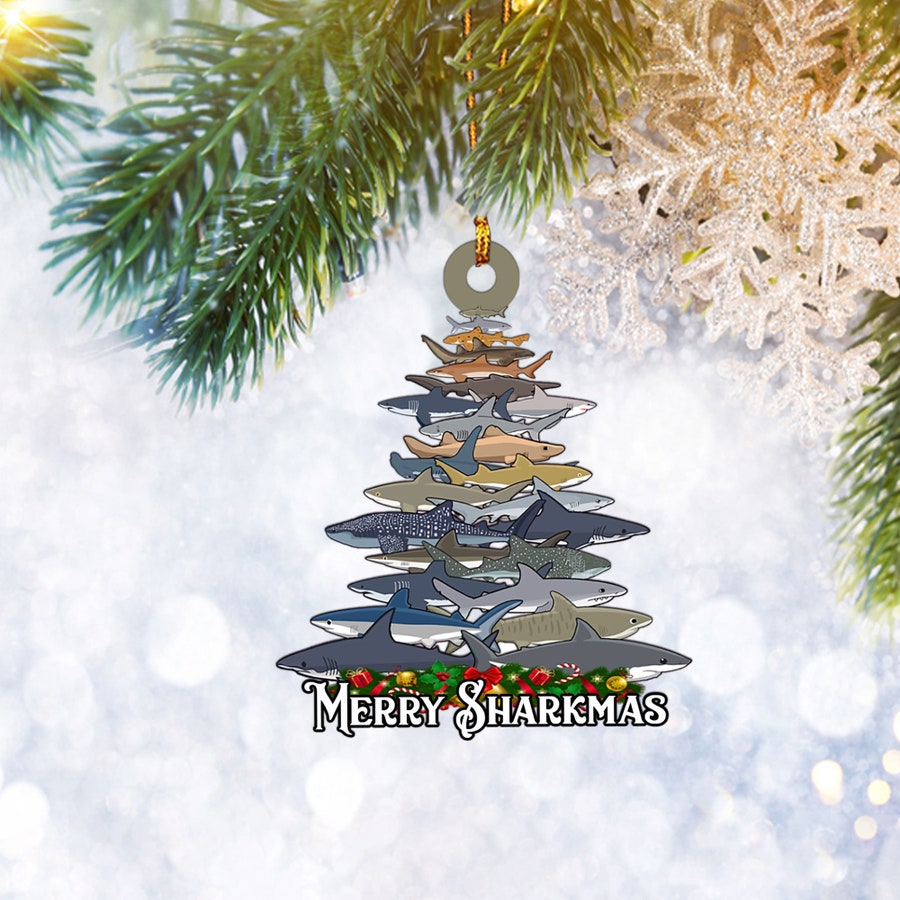 Shark Christmas Tree Flat 2D Ornament, Merry Sharkmas Christmas Tree Ornament, Animal Lover Home Decor Plastic Ornament
