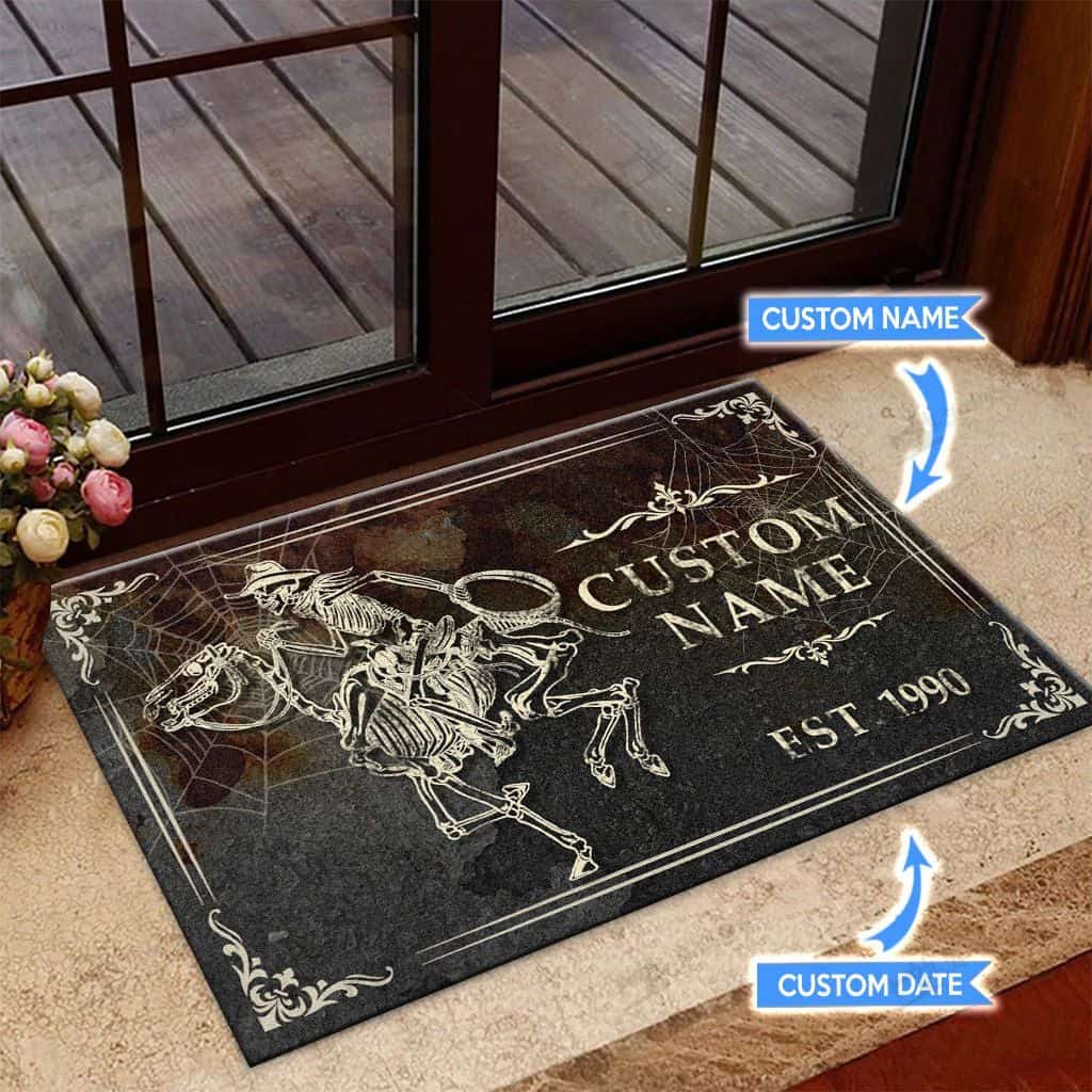 Skeleton Cowboy Personalized Custom Name Doormat Welcome Mat