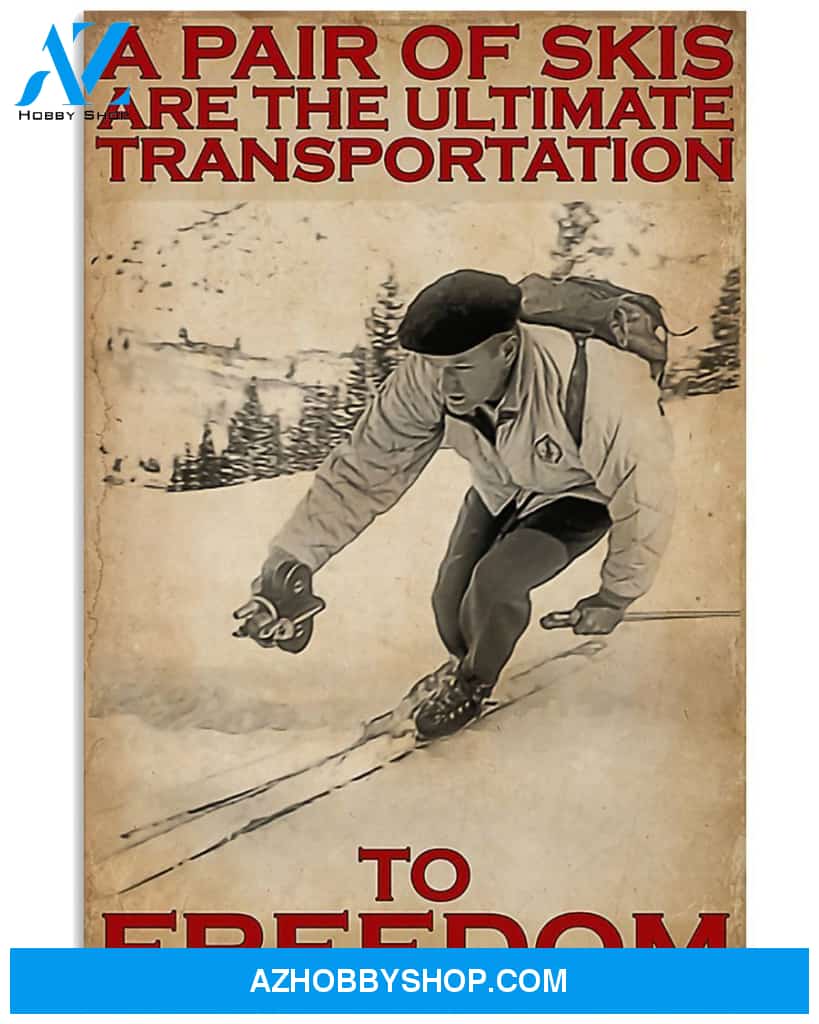 Skiing A Pair Of Skis Vertical Art Canvas, Wall Decor Visual Art