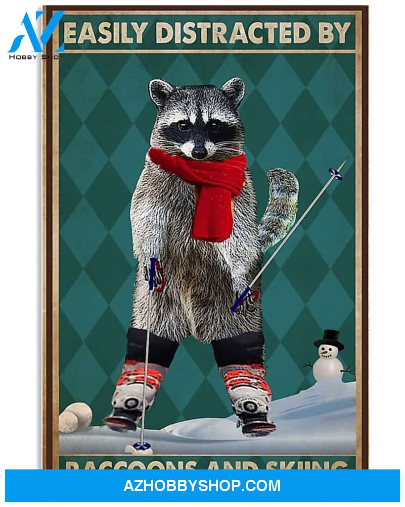 Skiing And Racccoons Vertical Canvas Painting, Wall Decor Visual Art