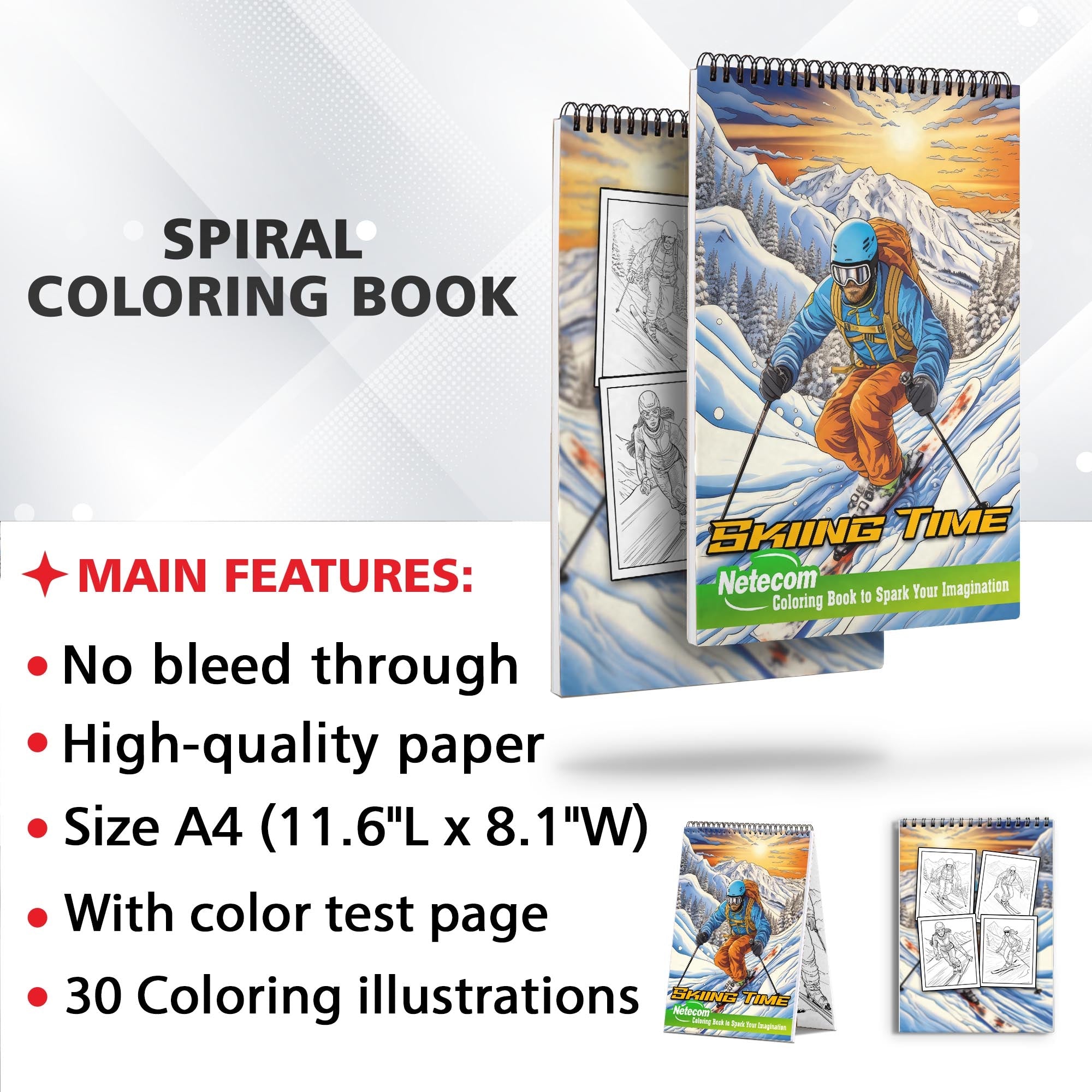 Skiing Time Spiral Bound Coloring Book, Unleash Your Creativity with 30 Whimsical Coloring Pages of Skiing Fun