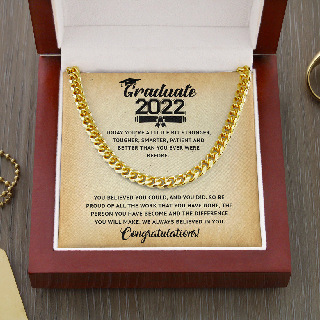Son Grandson Graduation Necklace Gift - Today You're a little bit stronger, tougher, smarter, patient and better than you ever were before - College, High School, Senior, Master Graduation Gift - Class of 2022 Cuban Link Chain Necklace - LX036G