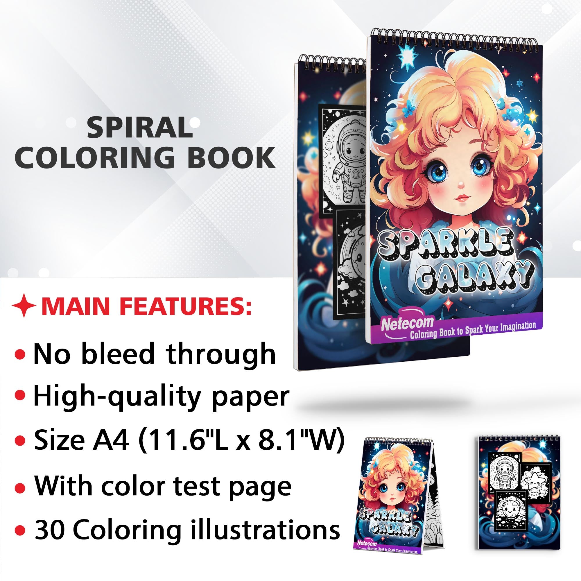 Sparkle Galaxy Spiral Bound Coloring Book, Dive into the Cosmos with the 30 Mesmerizing Pages of the Sparkle Galaxy Coloring Book