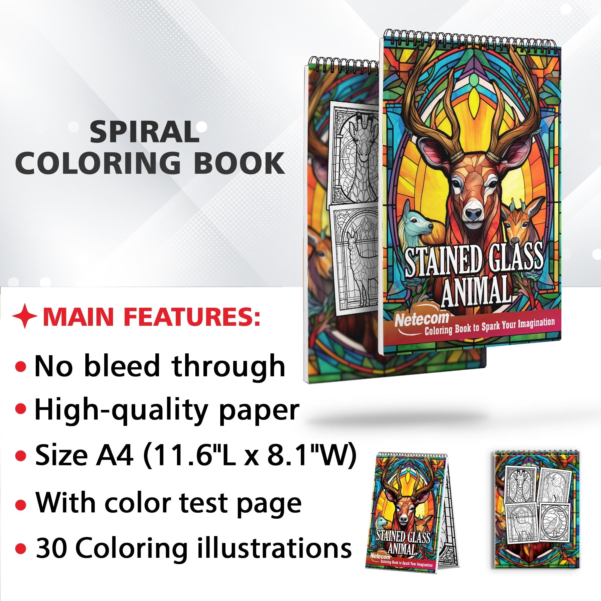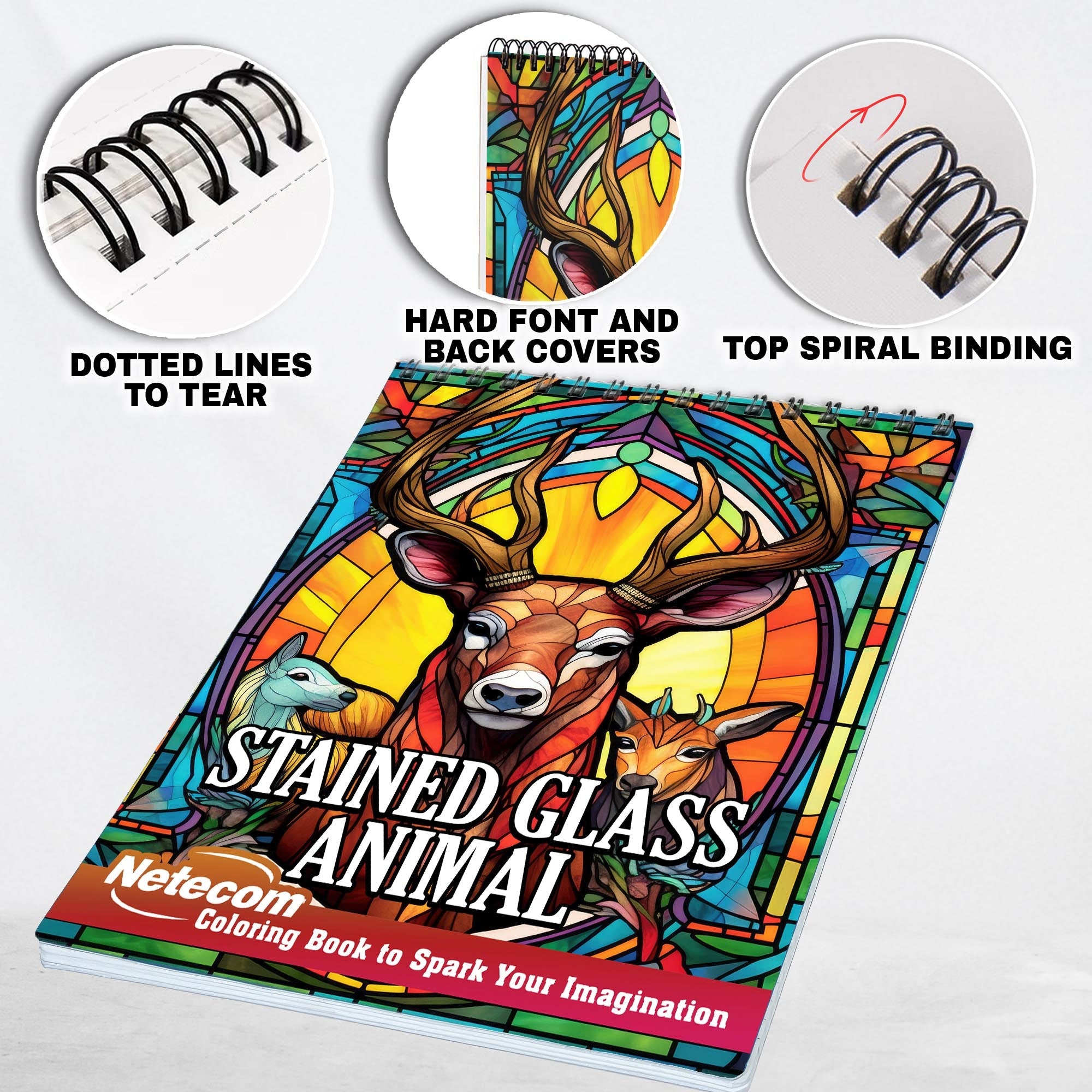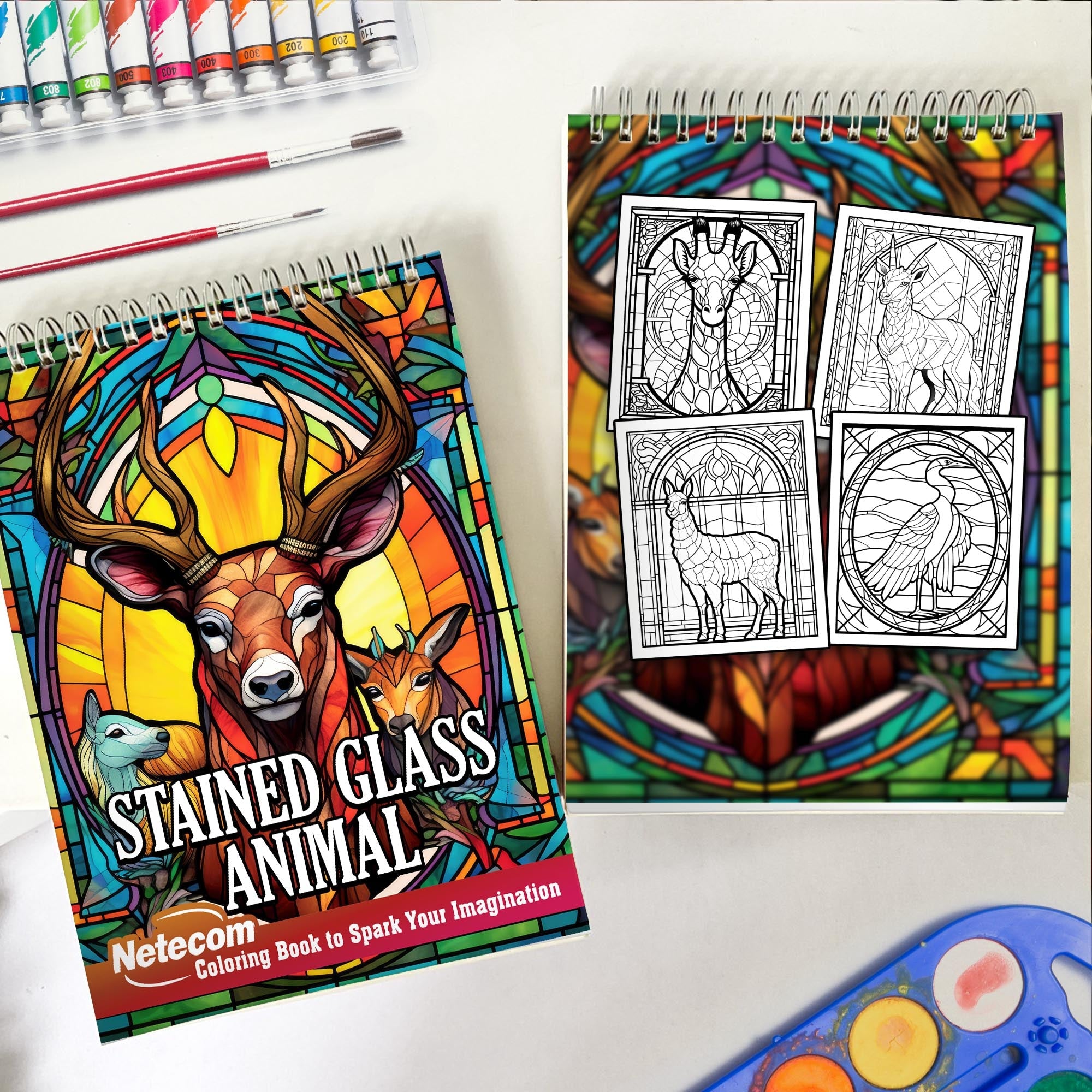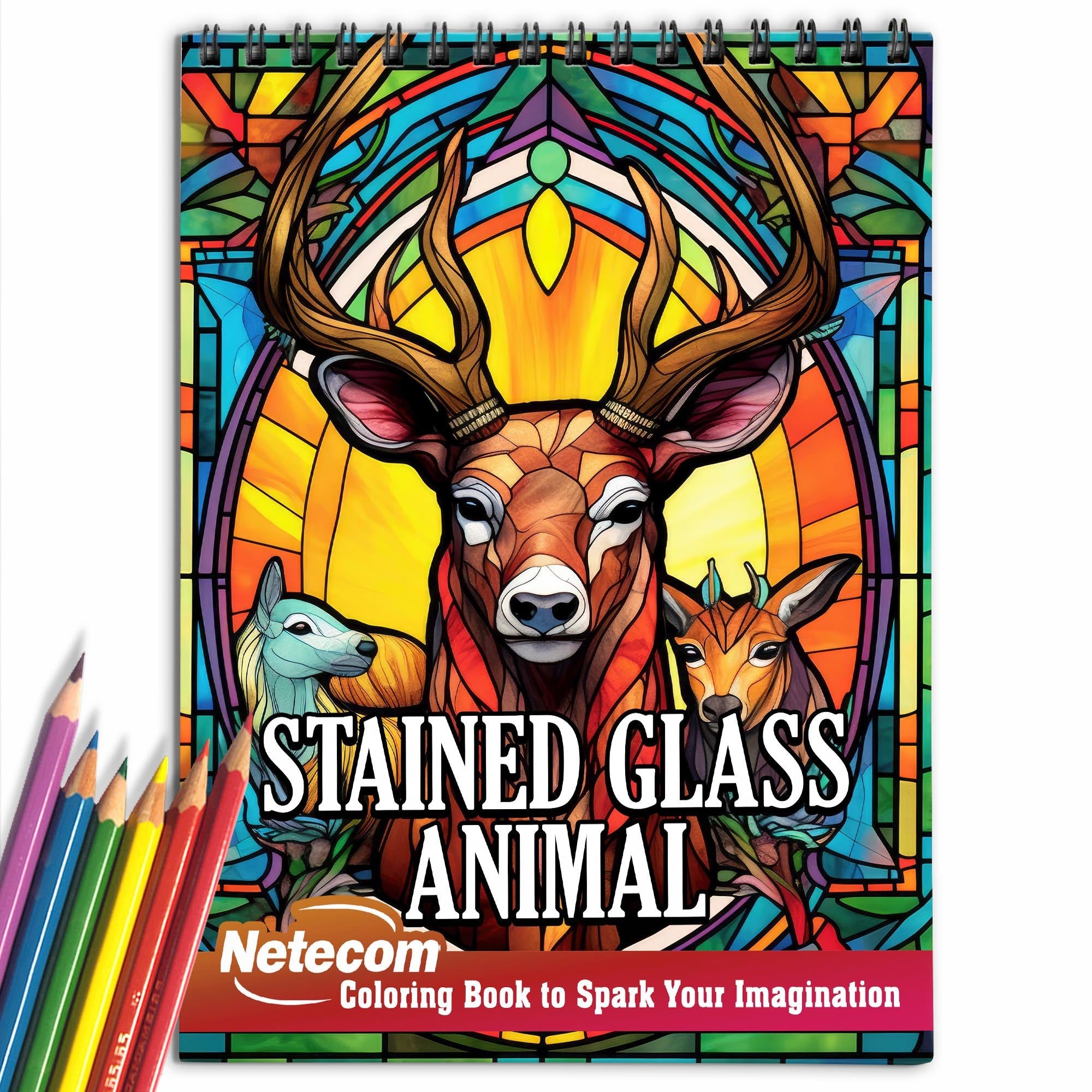 Stained Glass Animal Spiral Bound Coloring Book, Discover the Enchanting Beauty of Stained Glass with 30 Exquisite Coloring Pages that Showcase Graceful and Majestic Animals