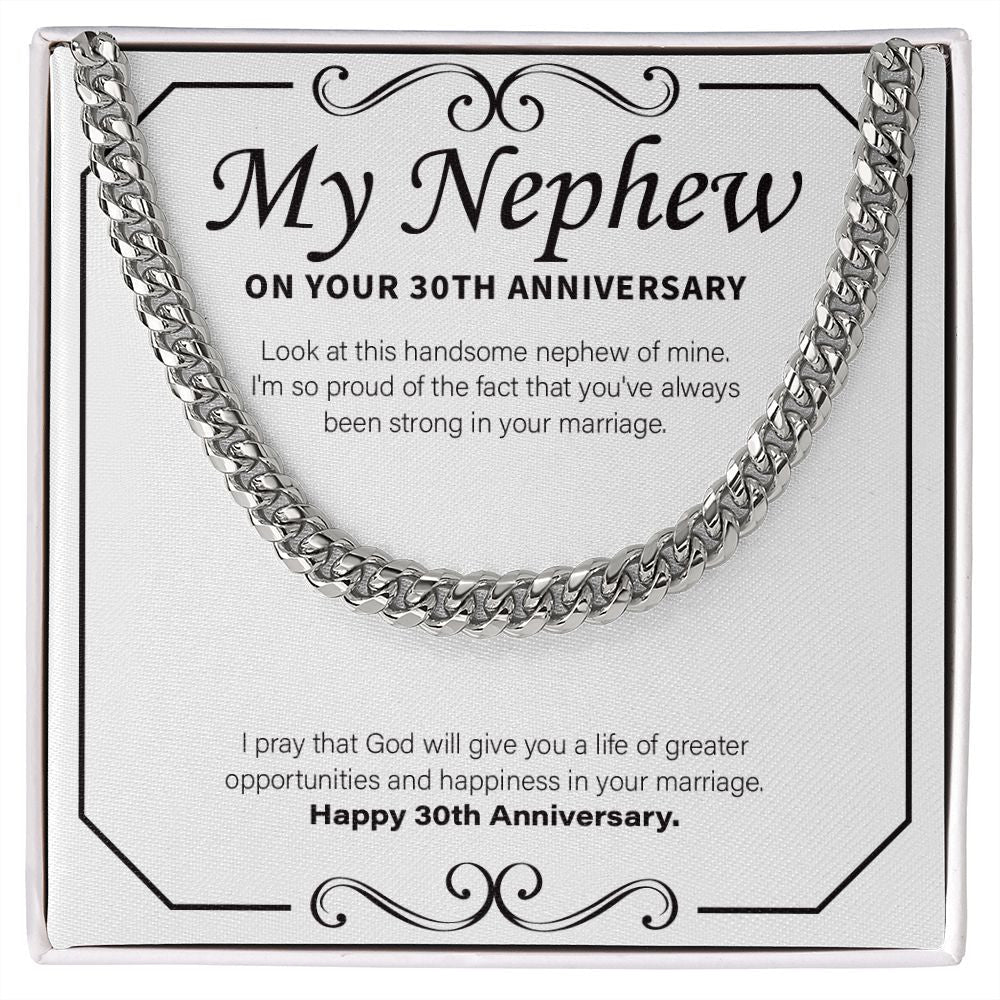 "Strong In Marriage" Nephew 30th Wedding Anniversary Necklace Gift From Aunt Uncle Cuban Link Chain Jewelry Box