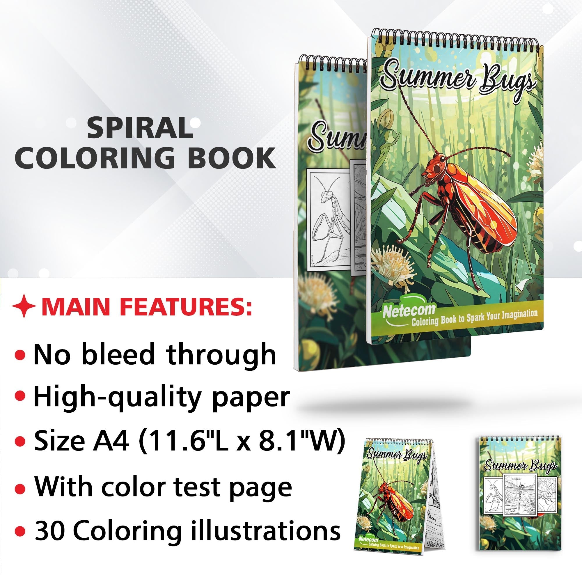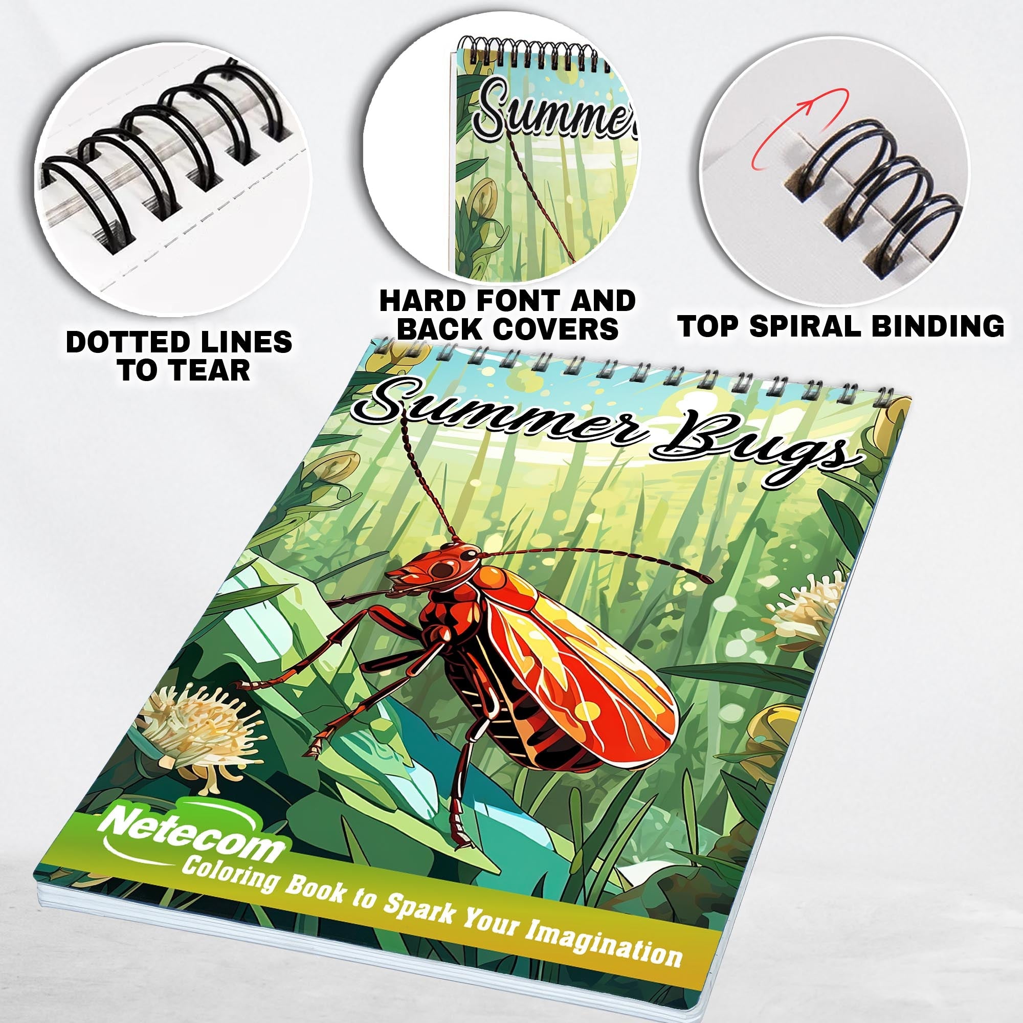 Summer Bugs Spiral Bound Coloring Book, Unleash Your Creativity with 30 Whimsical Coloring Pages of Summer Bugs