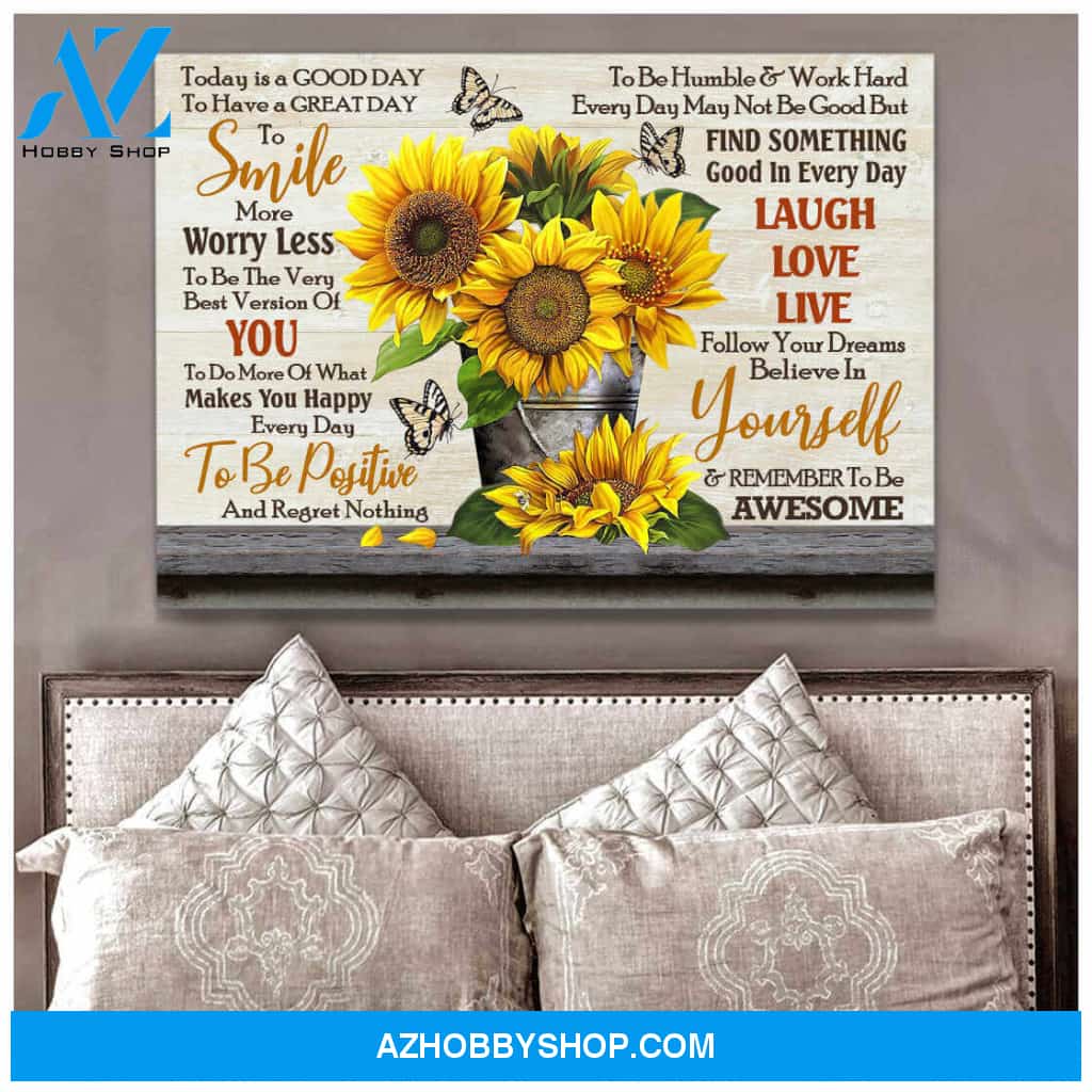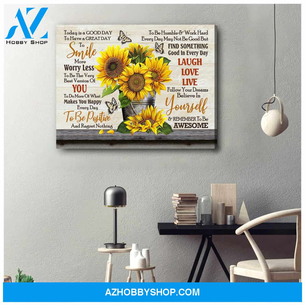 Sunflower And Butterfly, Today Is A Good Day Canvas Wall Art