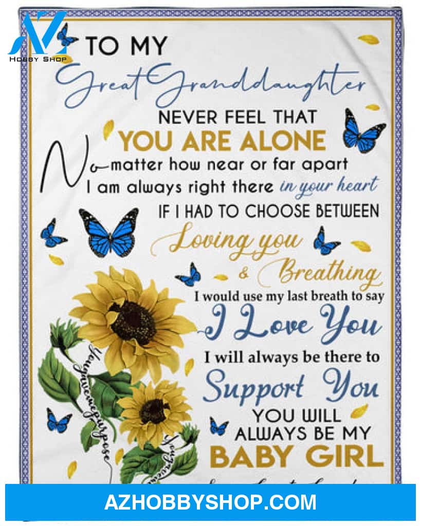 Sunflower & To My Great Granddaughter Blanket, I Will Always Be There To Support You Gift For Granddaughter From Grandma