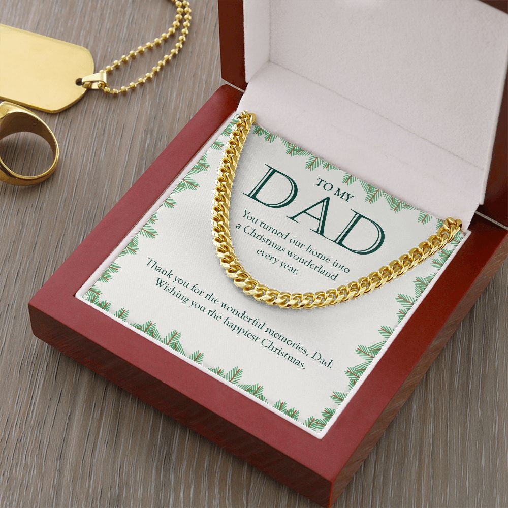 "Thank You For The Wonderful Memories" Dad Christmas Necklace Gift From Daughter Son Cuban Link Chain Jewelry Box