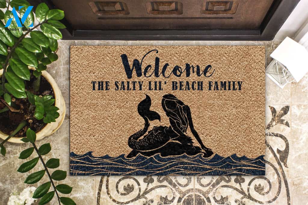 The Salty Lil' Beach Family Mermaid Doormat Indoor And Outdoor Doormat