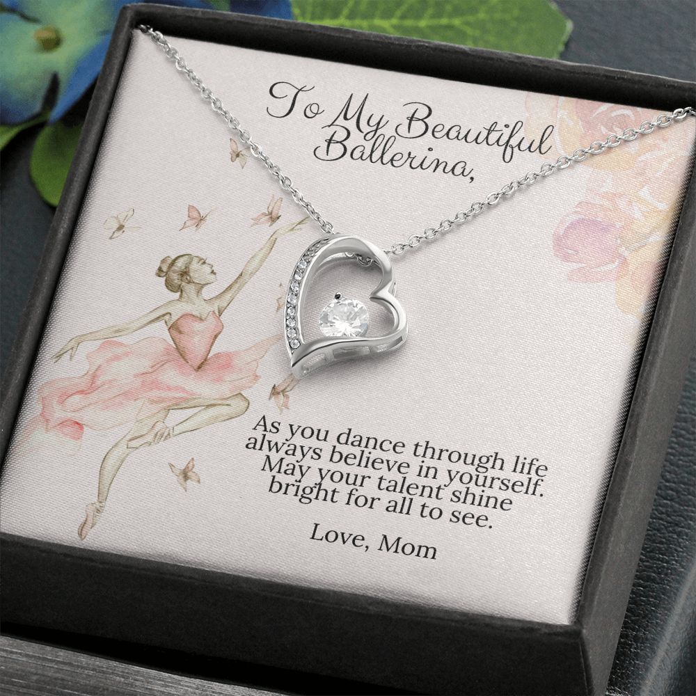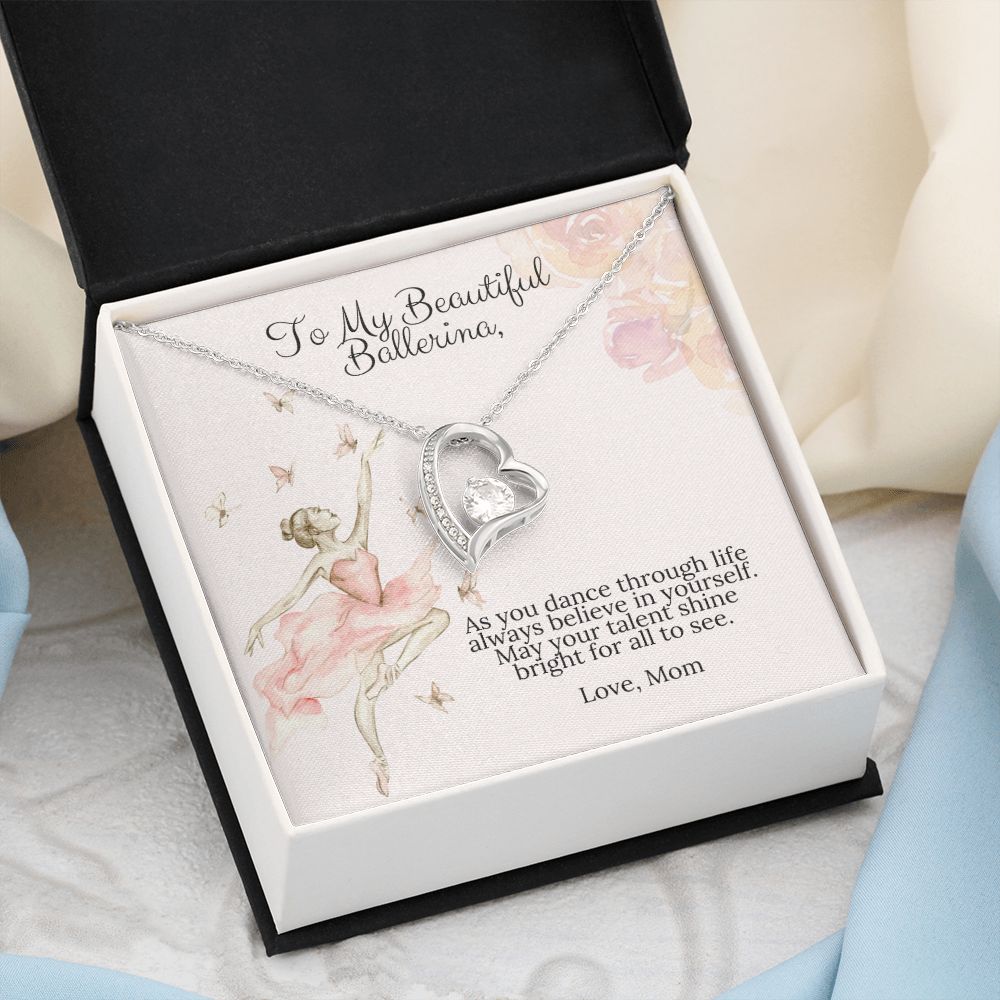 To My Beautiful Ballerina Love Mom Forever Love Heart Necklace Dance Recital Gift