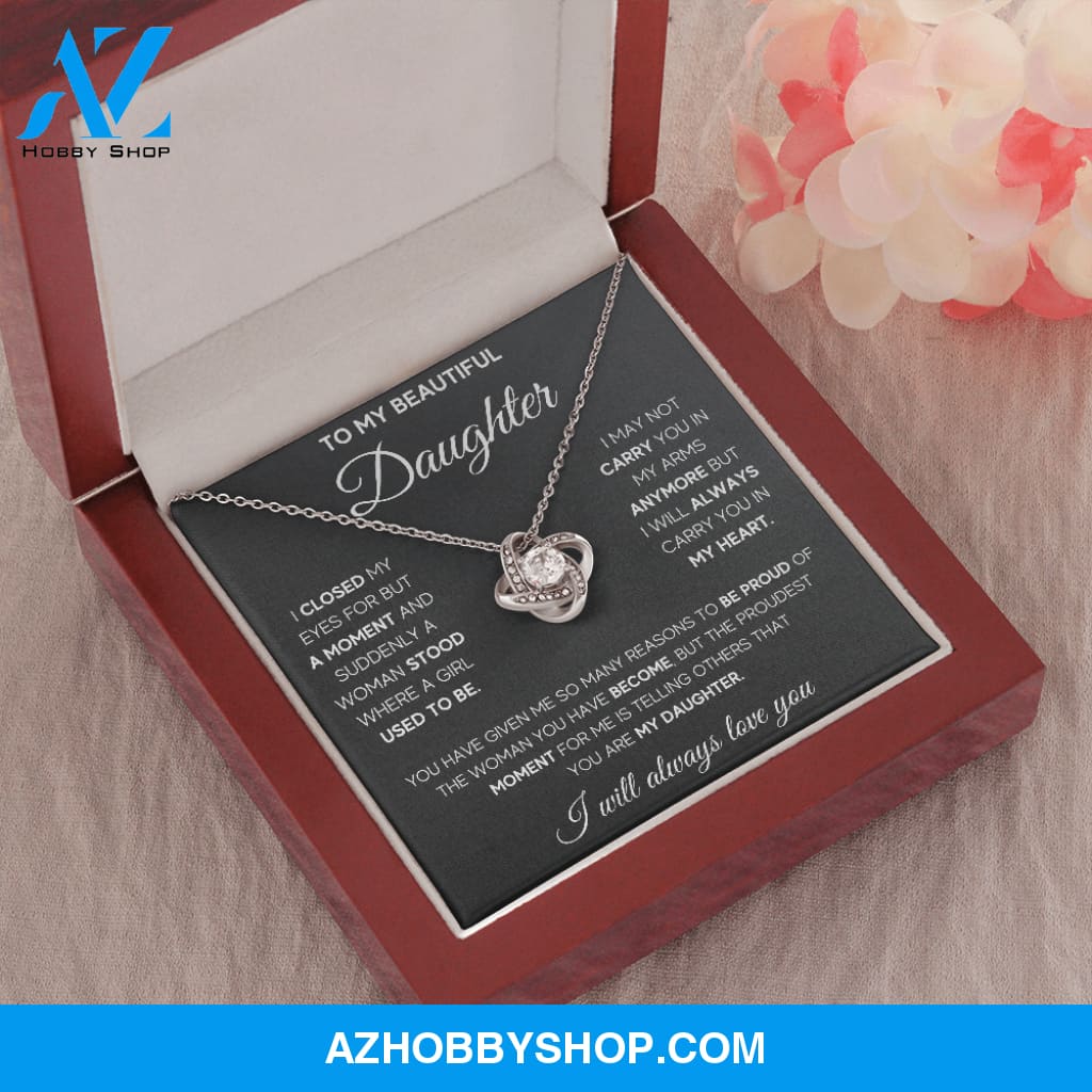 To My Beautiful Daughter Proud White Gold Love Knot Necklace Gift Set