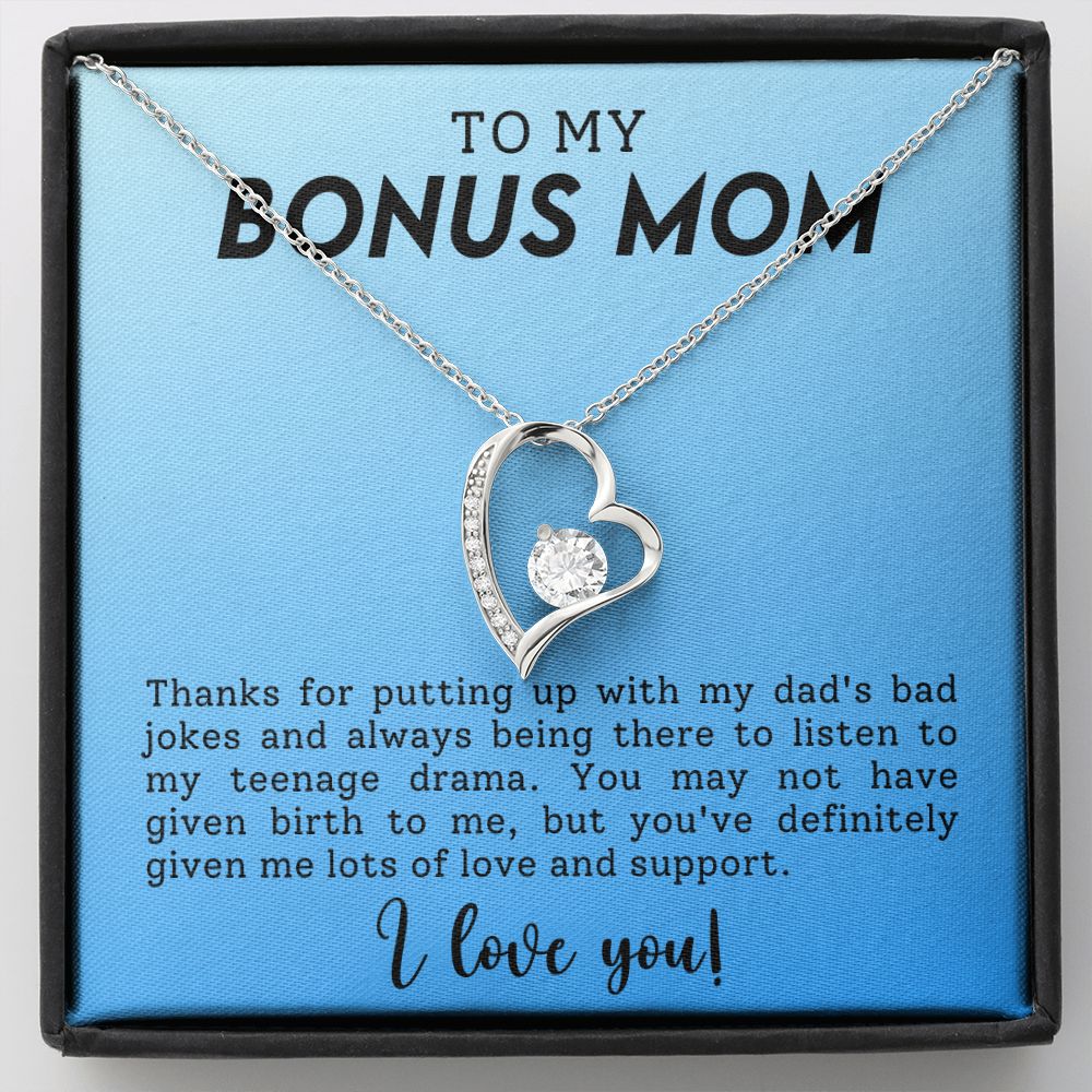 To My Bonus Mom Funny Forever Love Heart Necklace Gift for Stepmother