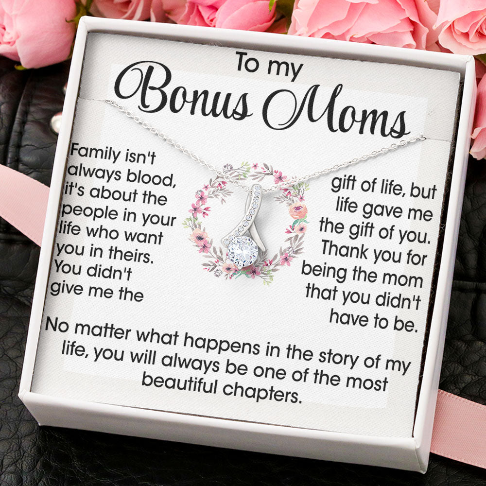 To My Bonus Mom Necklace Gift - Life gave me the gift of you Love Knot, Alluring Beauty, Eternal Hope Necklace LX070C