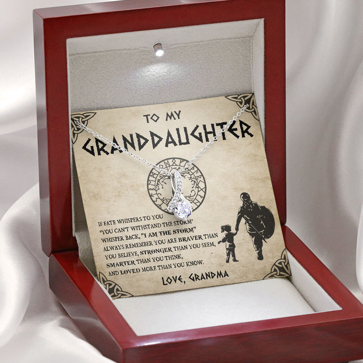 To My Daughter Granddaughter Necklace Gift - Viking Style Whisper Back I Am The Storm Braver, Stronger, Smarter and Loved - I Love you to the Valhalla and back - Custom Love Knot, Eternal Hope, Alluring Beauty Necklace 052D - TGV