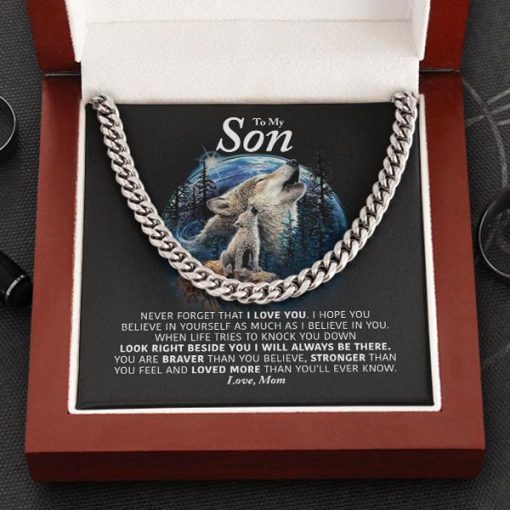 To My Son Necklace From Mom - Look right beside you I always be there Cuban Link Chain Necklace 070A - TGV