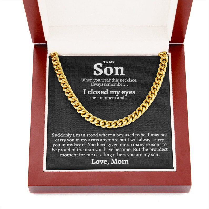 To My Son Necklace I will always carry you in my heart Love, Mom Cuban Link Chain Necklace 340M - TGV