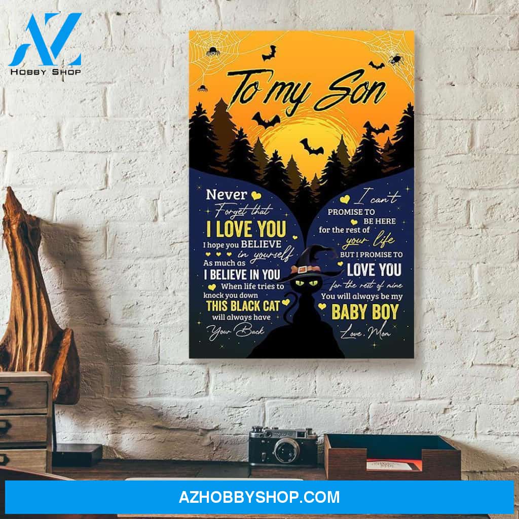 To My Son Never Forget That I Love You Mom Cat Halloween Canvas And Poster