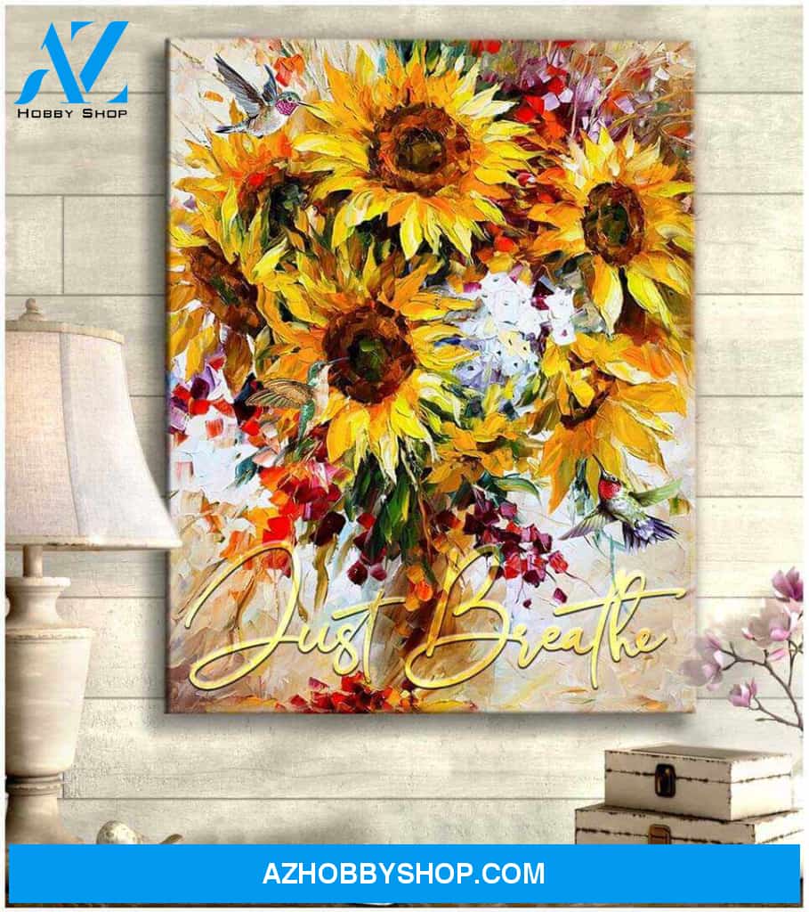 Top #1 Sunflower And Hummingbird Just Breathe Canvas Wall Art, Wall Decor Visual Art