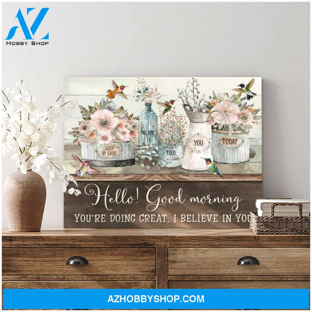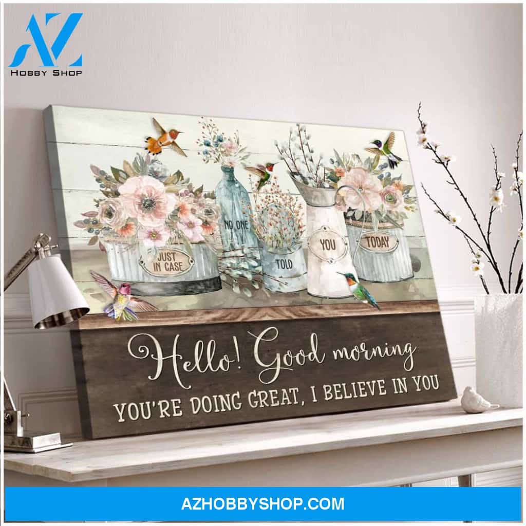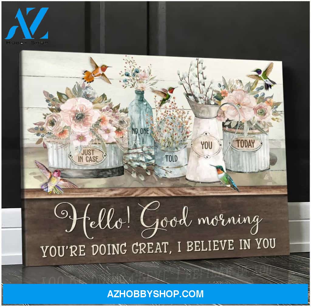 Top #68 Hello Good Morning Flowers And Hummingbirds Canvas Wall Art, Wall Decor Visual Art