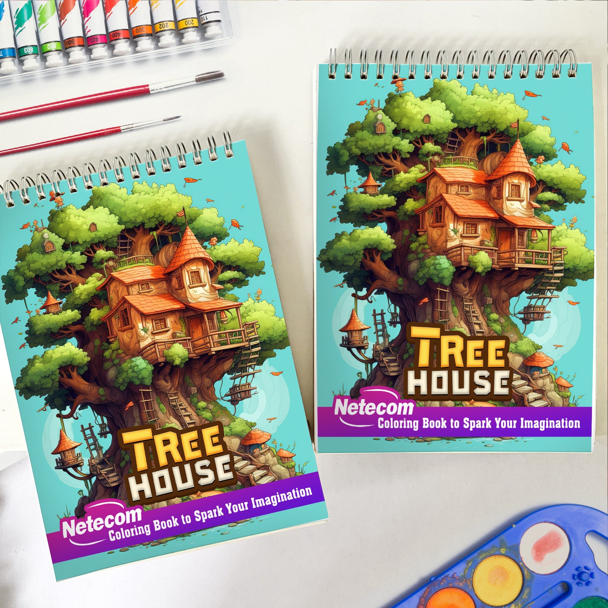 Tree House Spiral Bound Coloring Book, Explore 30 Intriguing Coloring Pages, Depicting Treehouses as Tranquil Retreats and Cozy Sanctuaries in Nature
