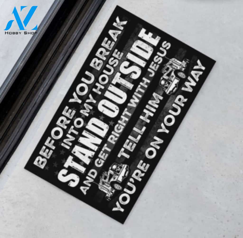 Trucker Before You Break Into My House Stand Outside And Get Right With Jesus Tell Him Youre On The Way Doormat